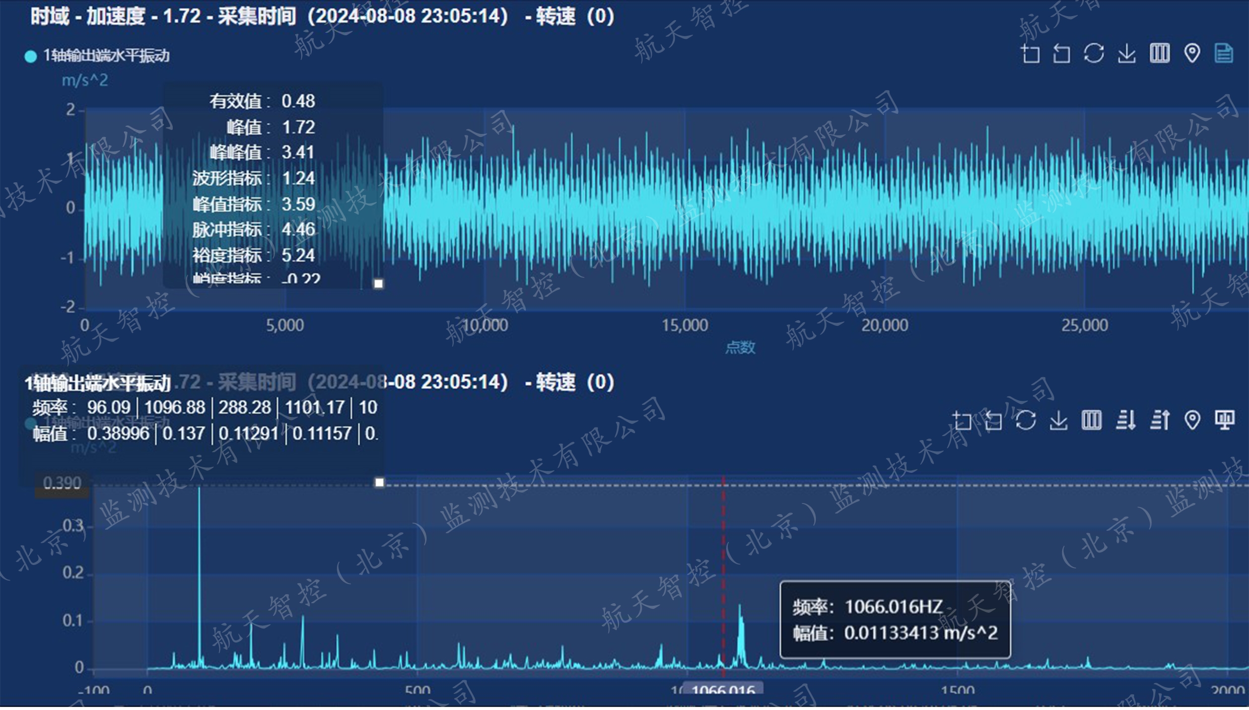 面对复杂的设备运行数据,航天智控的智能诊断分析团队迅速介入,通过时域波形及频谱的精细解读,精准定位故障源头——一轴输出端轴承内圈存在明显的缺陷频率的冲击。